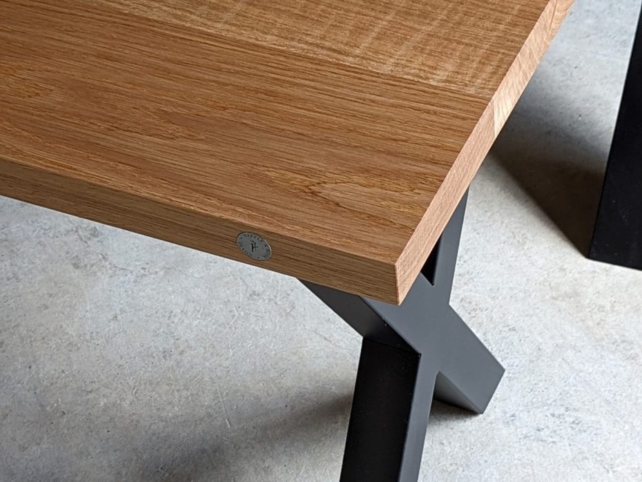 A thoroughly modern affair, our sleek Ex Moor table marries local oak with our own artisan steel X frame and comes in a myriad of options. We offer this table with the frame powder coated in your own choice of colour from the RAL palette. The tabletop is finished in natural hard wax oil as standard, or, why not explore our tinted oil options and create your very own one off!